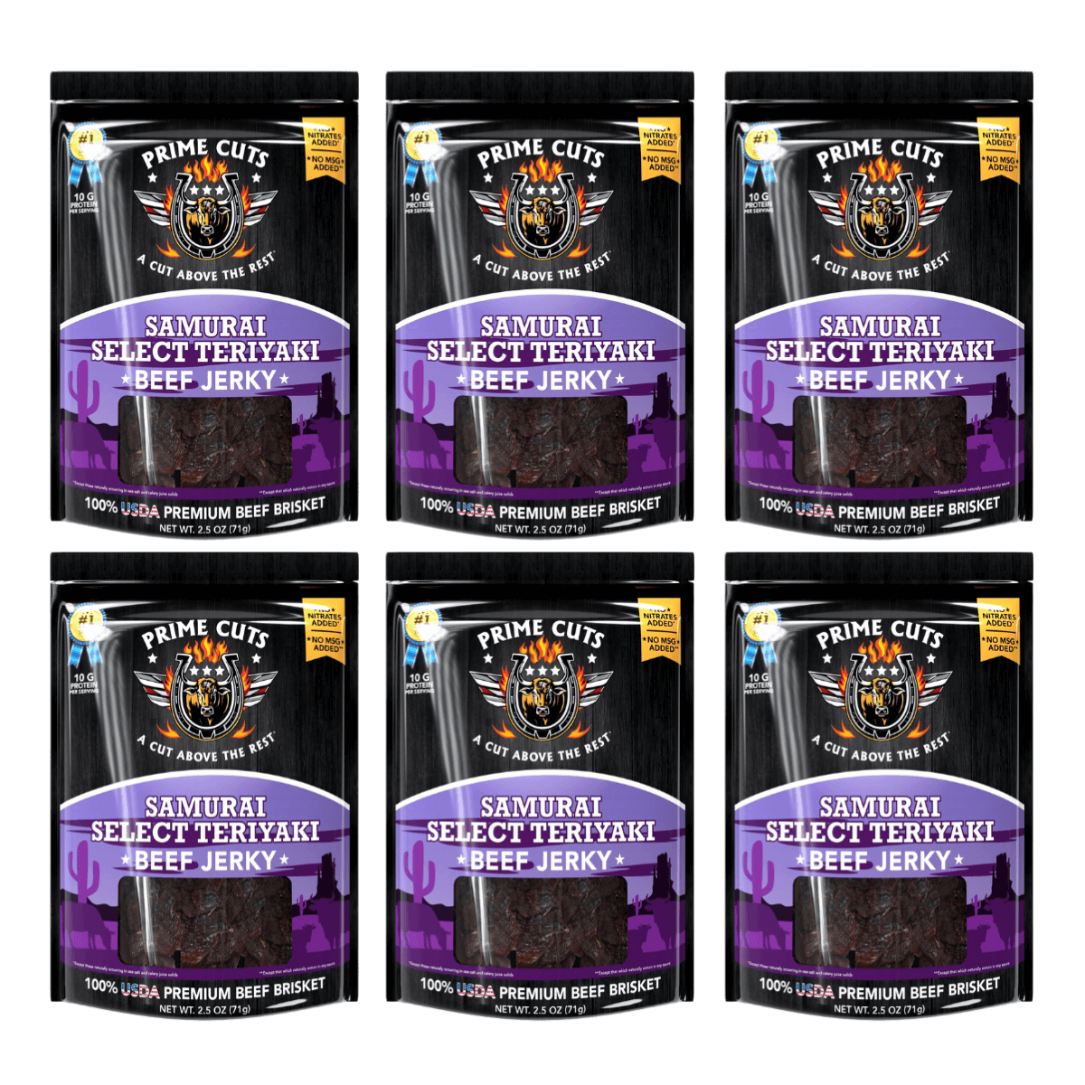 At Prime Cuts, we take pride in combining cultural authenticity with the highest-quality American beef to create an unforgettable snacking experience. Free from unnecessary additives and packed for easy portability, Samurai Select Teriyaki Beef Jerky brings gourmet flavor and convenience together in every bag.  Elevate your snack game with Prime Cuts Samurai Select Teriyaki Beef Jerky—where traditional Japanese teriyaki meets premium American craftsmanship for a deliciously unique, protein-rich treat that you’ll reach for again and again.