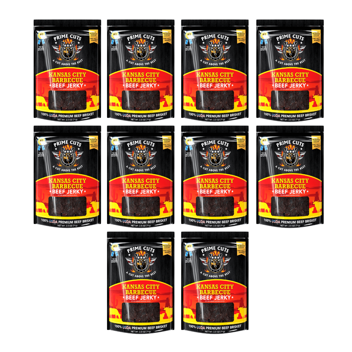Prime Cuts’ dedication to authenticity means you’re enjoying jerky made from high-quality American beef, marinated for depth and richness you can taste. With Prime Cuts, you're not just enjoying a snack—you're experiencing a celebration of real barbecue tradition. Taste the slow-smoked, saucy magic of Kansas City BBQ wherever your journey takes you, all wrapped up in the convenience of a high-quality, flavor-packed jerky.