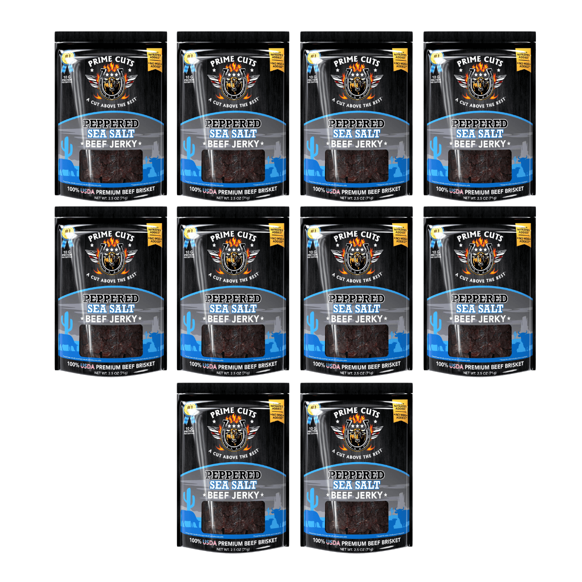 The black pepper provides a subtle kick, while the sea salt amplifies the beef's natural richness without overwhelming it, offering a clean, balanced flavor in every bite.  Prime Cuts Peppered Sea Salt Beef Jerky is more than just a savory treat—it's a smart nutritional choice. High in lean protein and low in fat and carbohydrates, it fits seamlessly into a health-conscious lifestyle, providing the fuel needed for workouts, travel, outdoor adventures, or busy workdays.
